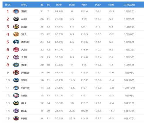 雷霆赢球后结束2连败,战绩31胜7负排名联盟第一,爵士输球后12胜24负排名西部第13。