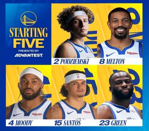 首发阵容方面,湖人队这边,八村塁生病继续缺阵,雷迪克教练排出的首发五人组为:卢卡-东契奇、奥斯汀-里夫斯、马库斯-斯马特、勒布朗-詹姆斯、德安德烈-艾顿;勇士这边,库里、巴特勒、波尔津吉斯全部高挂免战牌,追梦-格林迎来复出,首发阵容则为:波杰姆斯基、梅尔顿、穆迪、桑托斯、德雷蒙德-格林。