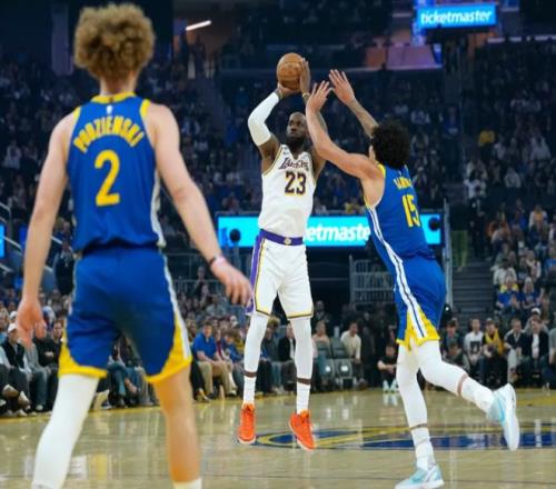 第三节回来,东契奇也连中三分,艾顿转身小勾手打进。追梦格林空位三分偏的没边,东契奇又开始下三分雨。中段拉拉维亚和里夫斯也外线发炮,湖人最多拉开27分差距。后半段桑托斯连续追分,但里夫斯带着海斯连续回应。节末肯纳德中投+拉拉维亚快攻上篮,霍福德三分球止血,三节打完,湖人99-72领先。第四节俨然失去悬念,最终湖人129-101大胜勇士。湖人数据,詹姆斯22分7篮板9助攻,艾顿4分10篮板,里夫斯18分3助攻,东契奇26分6篮板8助攻,肯纳德16分3篮板3助攻,斯玛特8分5篮板,海斯6分5篮板。