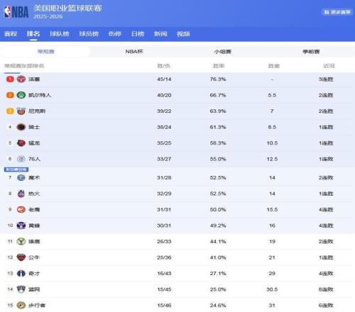 东部最新排名: