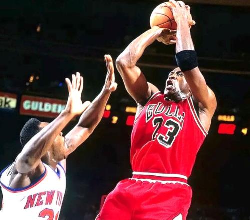1993年总决赛对阵太阳,乔丹场均轰下41分,几乎以一己之力击溃对手,带领公牛完成三连冠。中距离、突破、三分,他的进攻没有任何短板,对手怎么防都无济于事。
