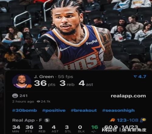 面对步行者,杰伦-格林出战34分钟,23投14中,三分9中3,罚球7中5,砍下了赛季新高的36分,还有3个篮板4次助攻3次抢断,正负值高达+16。今天,无疑是杰伦-格林在太阳队的代表作之一,在此之前,他在太阳的最高得分是29分。