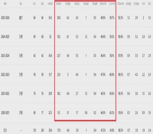 贝恩的到来,主要为魔术提供了急需的外线火力,本赛季打到现在全队三分命中数(11.7)&命中率(34.5%)均排在联盟第24尽管仍是中下游水平,但要知道他们上赛季常规赛和季后赛全部是整个联盟投射最拉胯的队伍,没有之一。